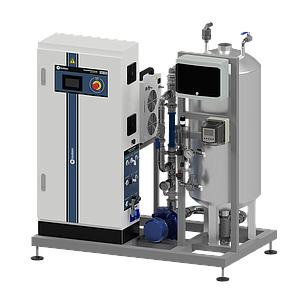Planta de Ozono Industrial tipo HIDRO VT, de última generación, de 120 gO3/h, 400 V, 3P+N, 50 Hz, 5,8 kW. Incluye generador de ozono industrial, sistema de dilución con tanque, bomba y venturi. Control por PLC.